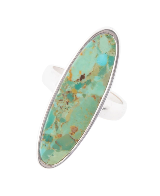 American West Jewelry Sterling Silver Green Turquoise 3 Stone Oval Scalloped Bezel Ring Sizes 5 To 11
