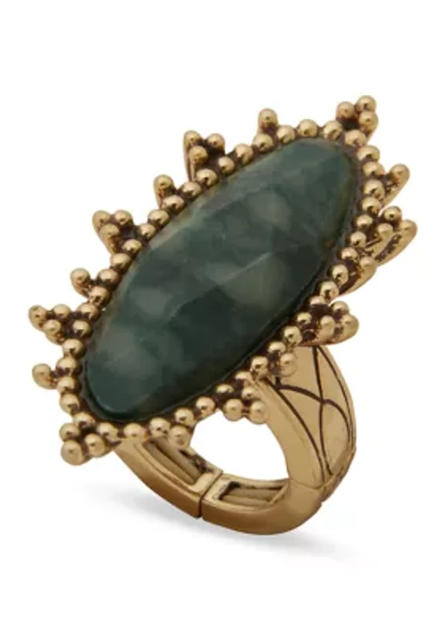 Goldtone Green Crystal Septum Ring - 16 Gauge