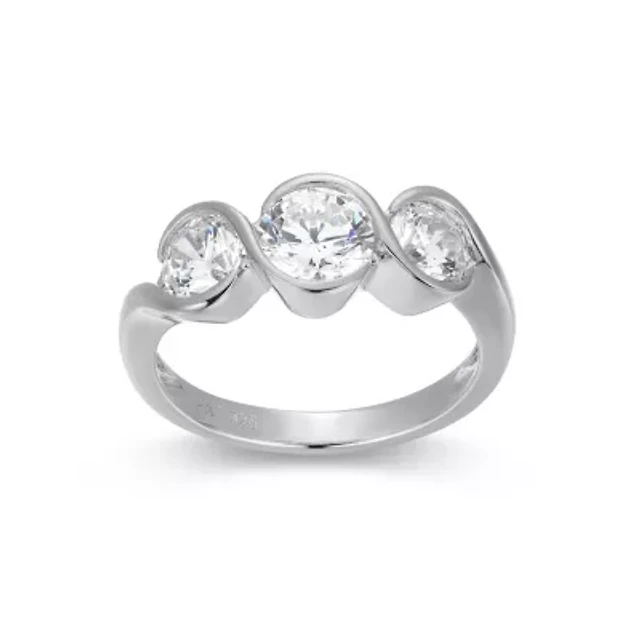 Sterling Silver White Gold Plated with Clear Cubic Zirconia 3-Stone Ring