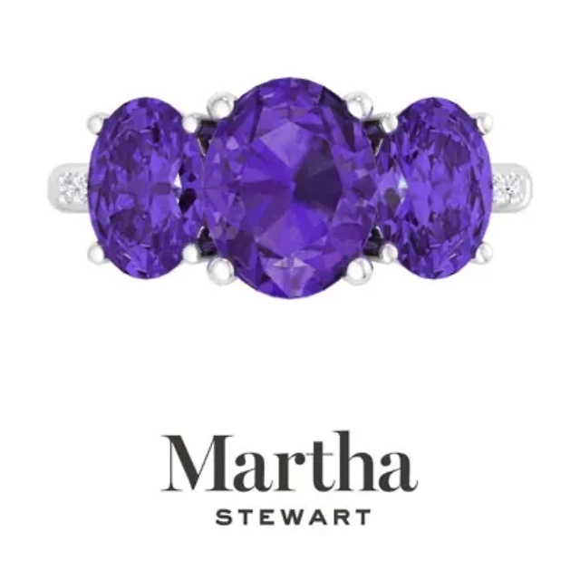 Lab Created Martha Stewart 5 Carat Oval Shape Peridot and Grown Diamond Three Stone Plus Ring Sterling Silver