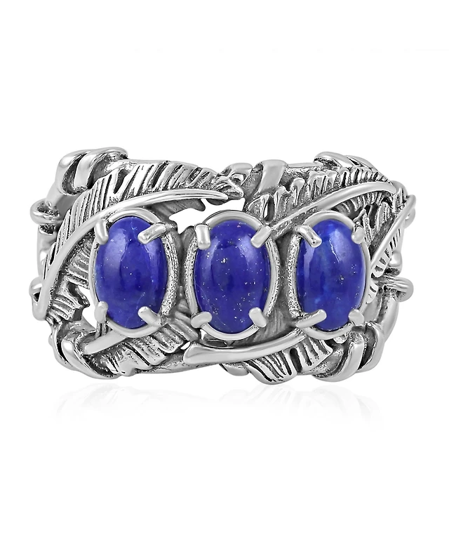 American West Jewelry Sterling Silver Green Turquoise Three Stone Feather Ring, Sizes 5 to 11