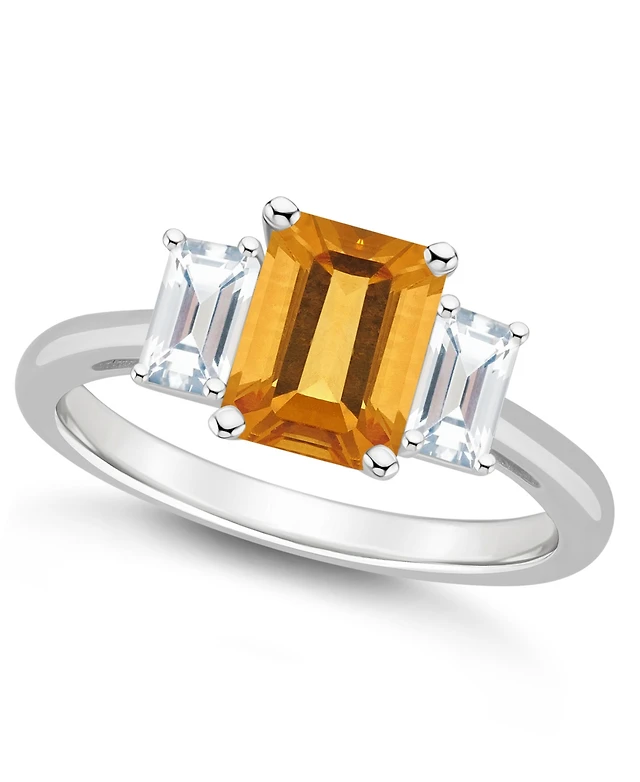 Emerald-Cut Lab-Created White Sapphire Frame Ring in Sterling Silver