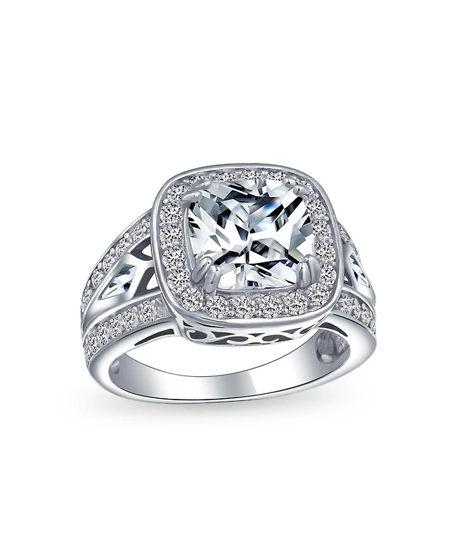 Bling Jewelry 3CT Cz Three Stone Past Present Future Cubic Zirconia Rectangle Square Princess Cut promise ring Sterling Silver