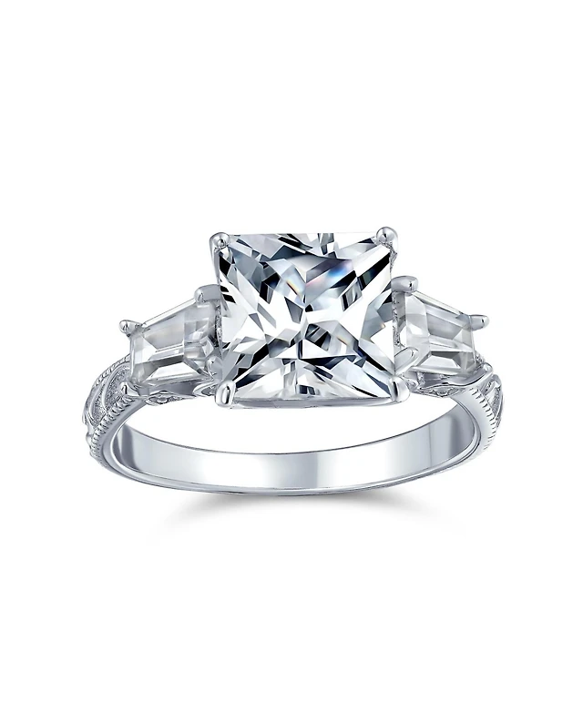Cubic Zirconia Solitaire Alternating Pavé Engagement Ring in Sterling Silver - Size 7