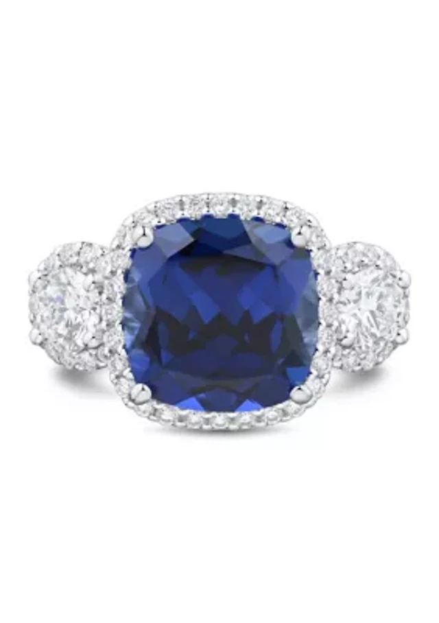 11.0mm Cushion-Cut Lab-Created Blue and White Sapphire Thick Frame Ring in Sterling Silver