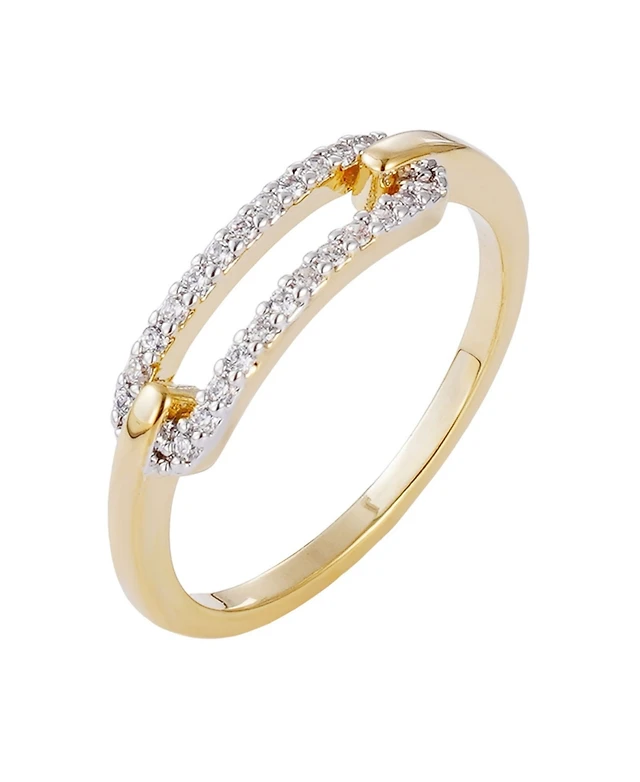 Cubic Zirconia Pavé Oval Link Ring in Solid Sterling Silver - Size 7