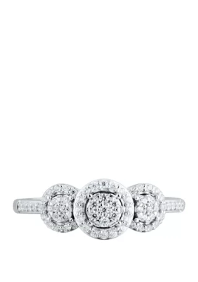 1/5 CT. T.w. Multi-Diamond Triple Flower Ring in 10K White Gold