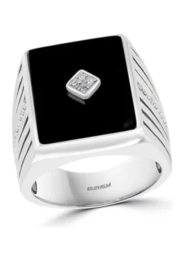 Men's Sterling Silver Cubic Zirconia and Onyx Ring
