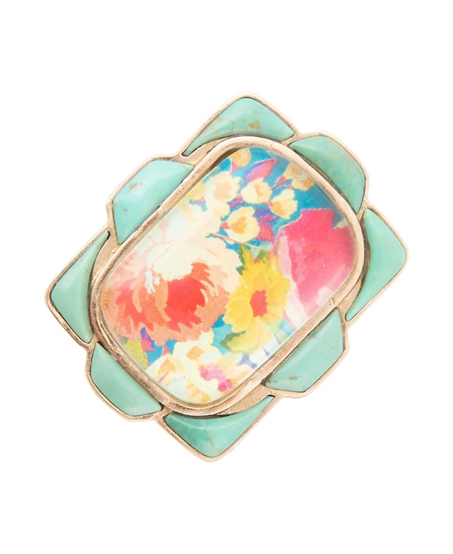 Barse Open Genuine Blue Turquoise Sterling Silver Rectangle Ring