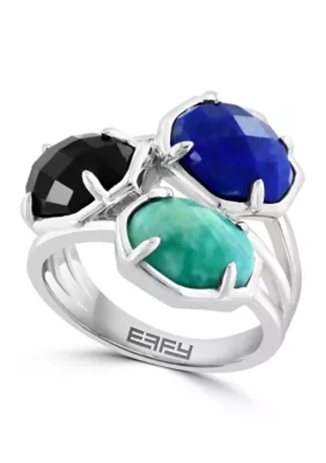 Men's Sterling Silver Rhodium-Plated Onyx and Cubic Zirconia Ring
