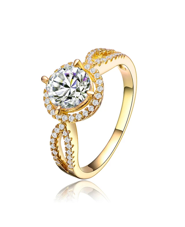 6.96 Cttw. Round Gold-Plated Cubic Zirconia Bridge Engagement Ring