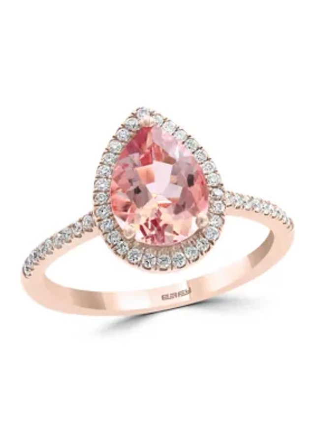 Le Vian Peach Morganite (1-1/2 ct. t.w.) & Diamond (1-1/20 ct. t.w.) Halo Statement Ring in 14k Rose Gold