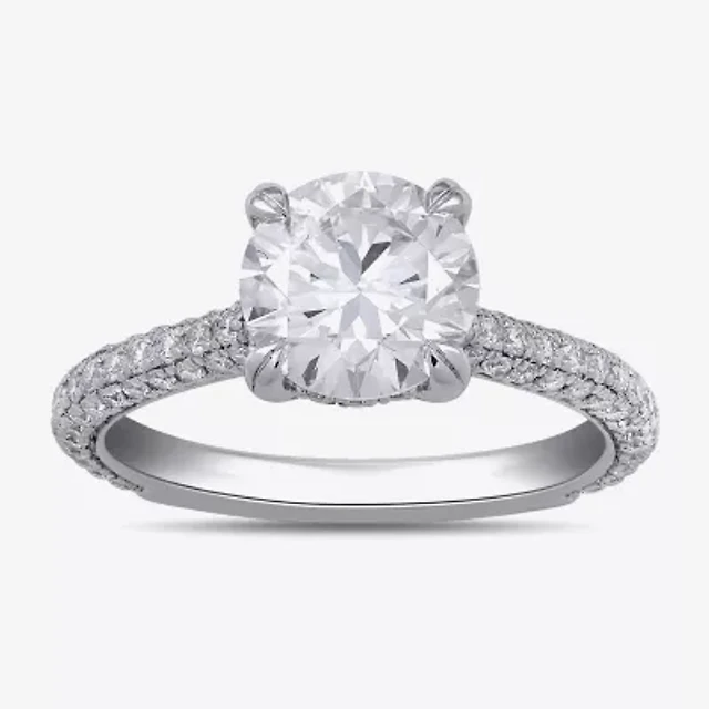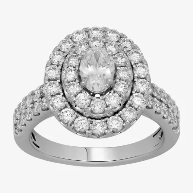 Signature By Modern Bride (H-I / Si2) Womens 2 CT. T.W. Lab Grown White Diamond 10K Gold Oval Side Stone Halo Engagement Ring