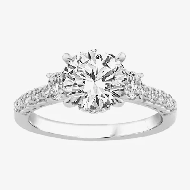 Signature By Modern Bride (F / Si1) Womens 1 3/4 CT. T.W. Lab Grown White Diamond 10K Gold Oval Side Stone Engagement Ring