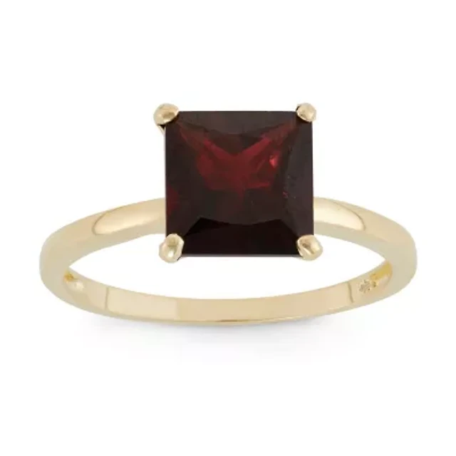 Womens Genuine Red Garnet 10K Gold Solitaire Cocktail Ring