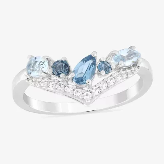 Womens Genuine Blue Topaz Sterling Silver Halo Cocktail Ring