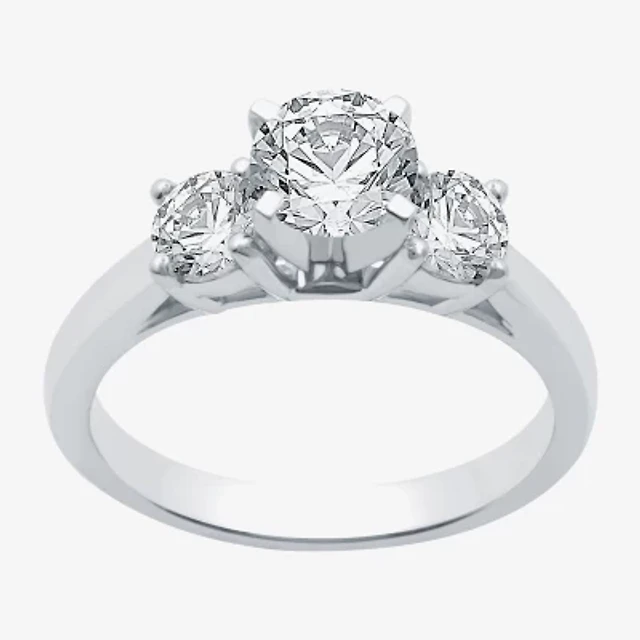 Signature By Modern Bride (H-I / I1) Womens 1 1/2 CT. T.W. Lab Grown Diamond 10K White Gold Side Stone Halo Engagement Ring