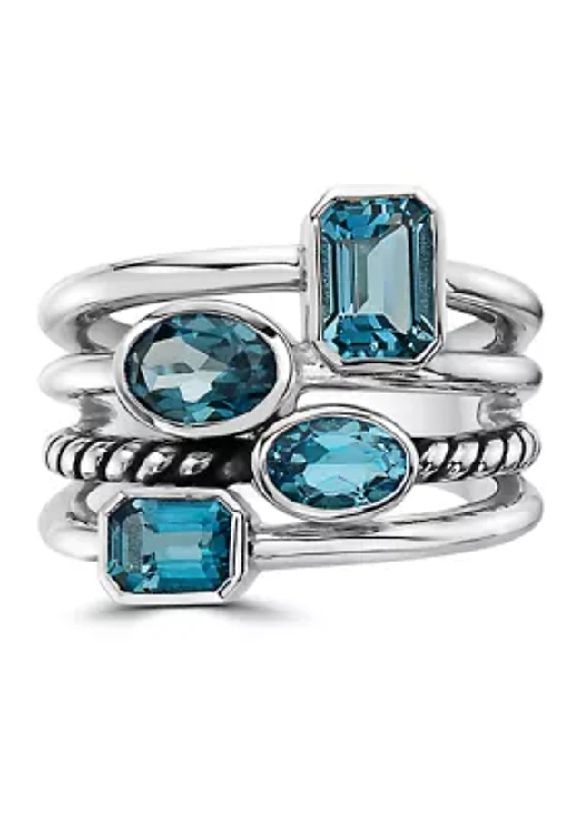 Womens Diamond Accent Genuine Blue Topaz Sterling Silver Heart Cocktail Ring