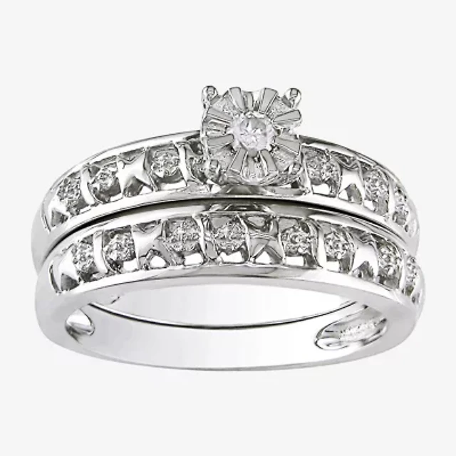 Previously Owned - 1/6 CT. T.w. Diamond Three Stone Slant Bridal Set in 10K White Gold
