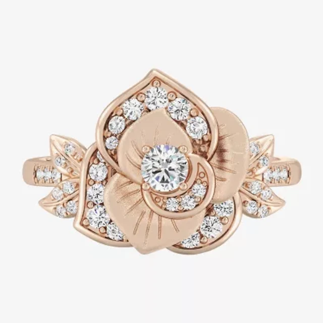 Enchanted Disney Fine Jewelry Rose (I, I2) Womens 1/2 CT. T.W. Lab Grown White Diamond 14K Gold Over Silver Flower Belle Princess Side Stone Cocktail Ring