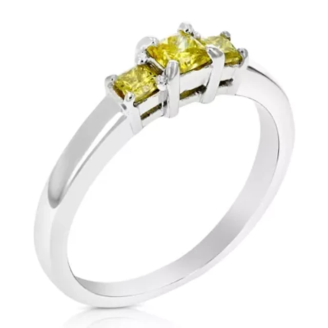 6mm Princess-Cut Cubic Zirconia Three Stone Engagement Ring in 10K White Gold - Size 7