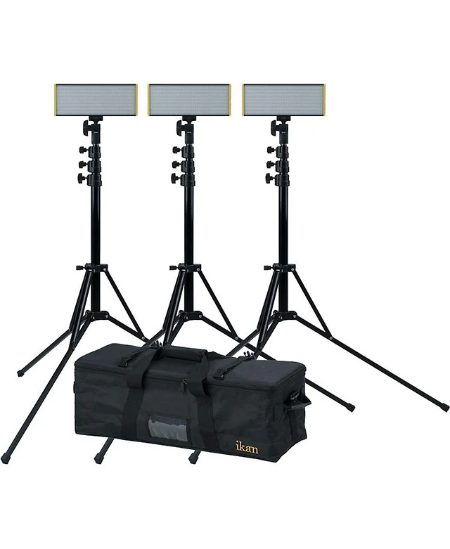 Ikan Onyx Half x 1 Bi-Color 3-Point Led Light Kit with 3x 8' V2 Heavy Duty Light Stand, Graphite