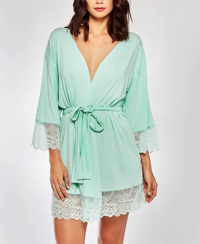 Flora by Nikrooz Kit Heart Lace Matte Charmeuse Wrap Robe
