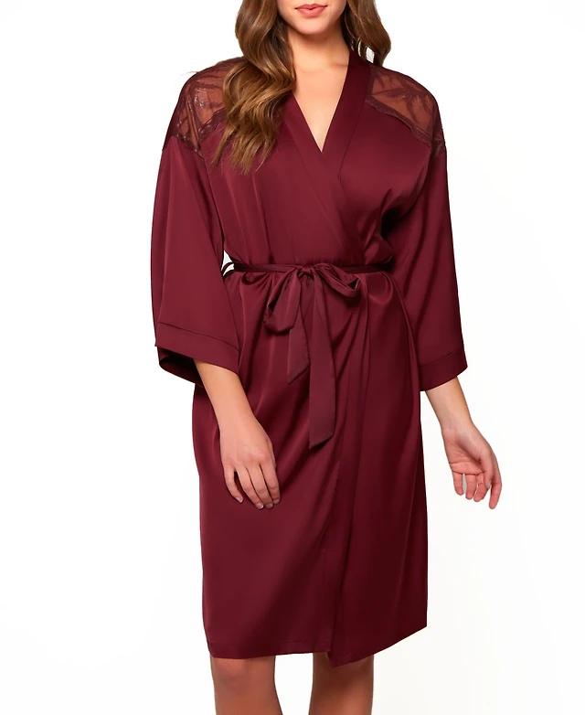 I.n.c. International Concepts Women's Lace-Trim Stretch Satin Robe, Created for Macy's