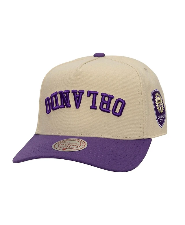 Mitchell & Ness Men's Cream/Purple Orlando City Sc Upside Down Pro Pinch Snapback Hat