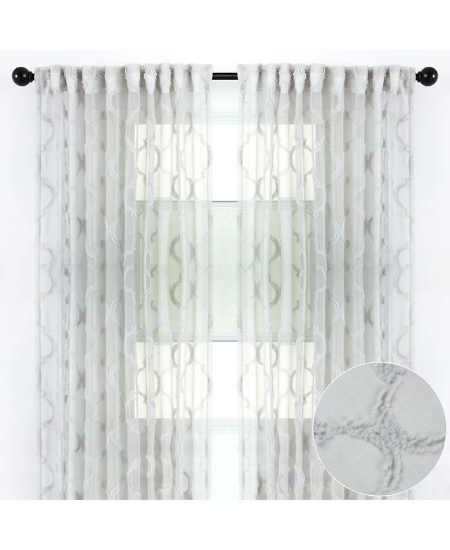 Habitat Limoges Sheer Rod Pocket Delicate Scalloped Bottom Hem Floral Lace Design Swag Valance Set 72" x 32"