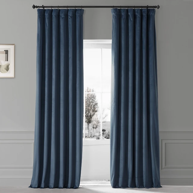 Half Price Drapes Angora Beige Signature Plush Velvet Hotel Blackout Curtain