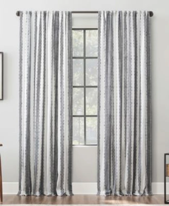 Ellis Curtain Shadow Stripe Tailored Curtain Panel Pair For Windows With Ties 80 X22 X 63 X22 Natural