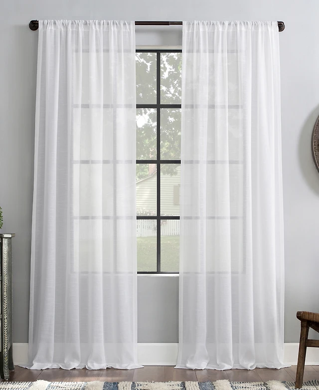 Ellis Intricate Brush Fringe Sewn On Inside Edge Bottom 1.5 X22 Rod Pocket Tailored Pair 80 X22x54 X22 W Ties White