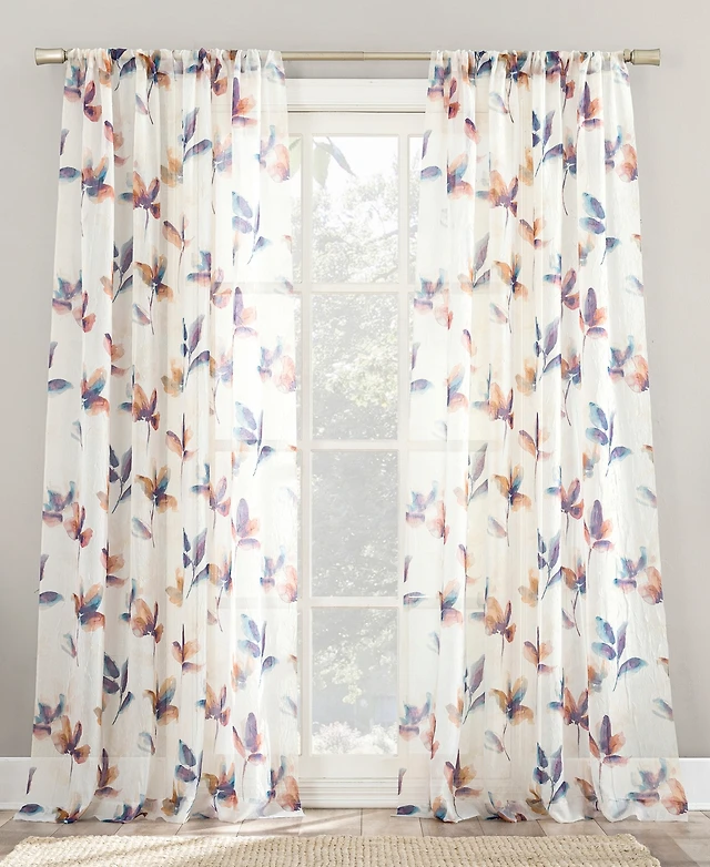 Maeve Botanical Print Sheer Rod Pocket Curtain Panel