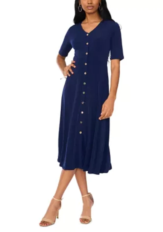 Petite Cap Sleeve Midi Dress with Collar Trim