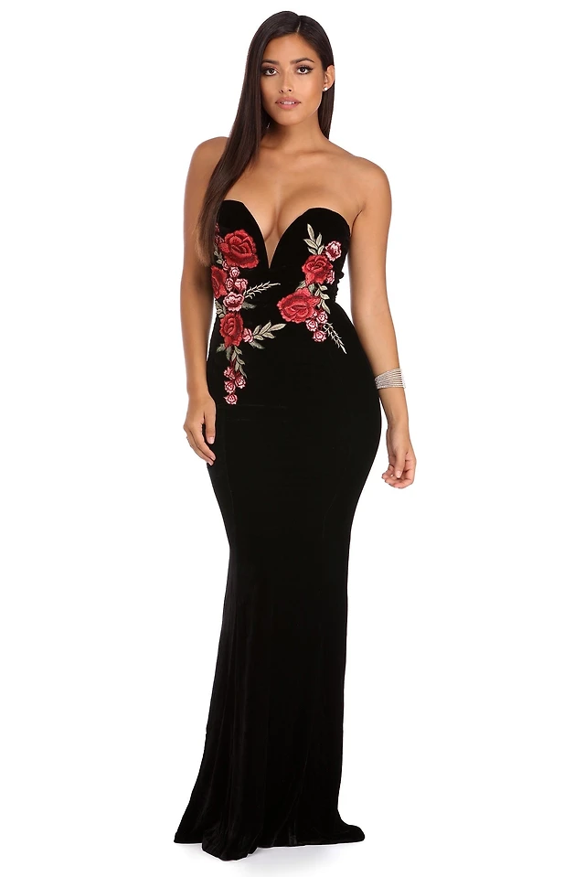 Francesca Velvet Rose Applique Dress