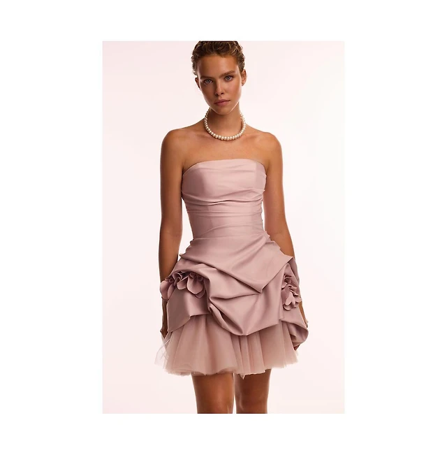 endless rose Women's Textured Strapless Voluminous Mini Dress