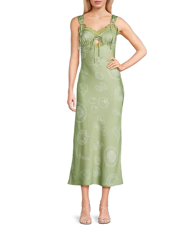 endless rose Women's Satin Velvet Drop Waist Midi Dress