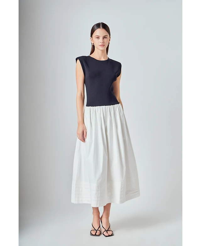 endless rose Women's Mixed Media Strapless Fitted Maxi Dress
