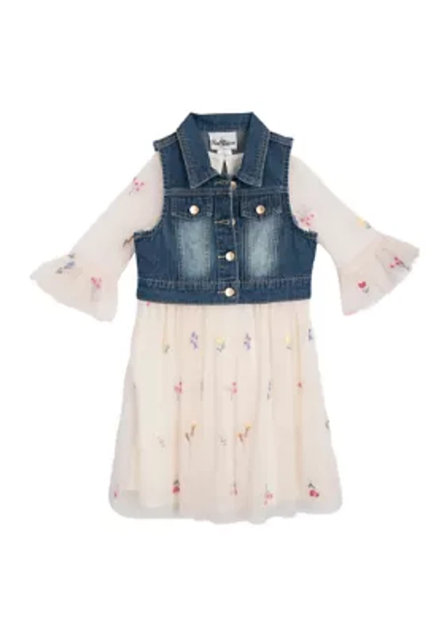 Girls 4-6x Denim Vest and Embroidered Floral Dress Set