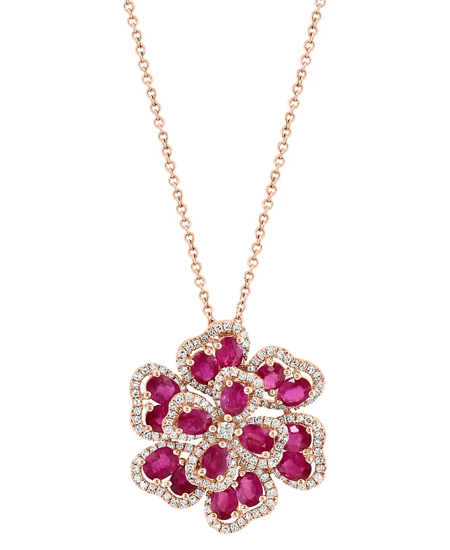 Effy Ruby (3-3/4 ct. t.w.) & Diamond (5/8 Flower 18"Pendant Necklace 14k Rose Gold