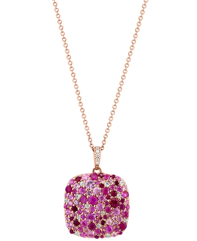 Le Vian Strawberry Layer Cake Multi-Gemstone Ombre Heart 18" Pendant Necklace in 14k Rose Gold