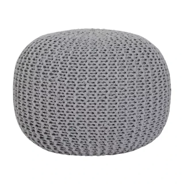Hand-Knitted Cotton Pouf Ottoman Footstool, 13" Round x 11" High, Boho Accent Footrest with Non-Skid Legs, Foot Stool and Extra Seating