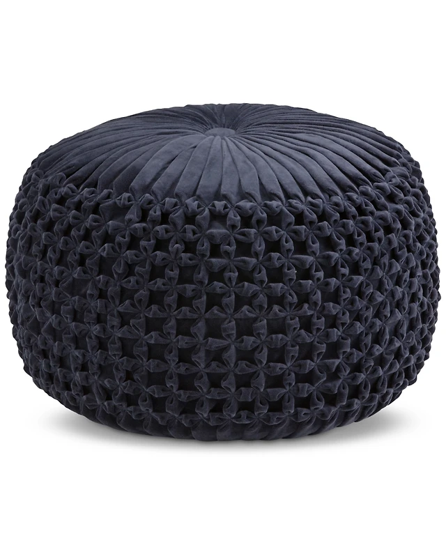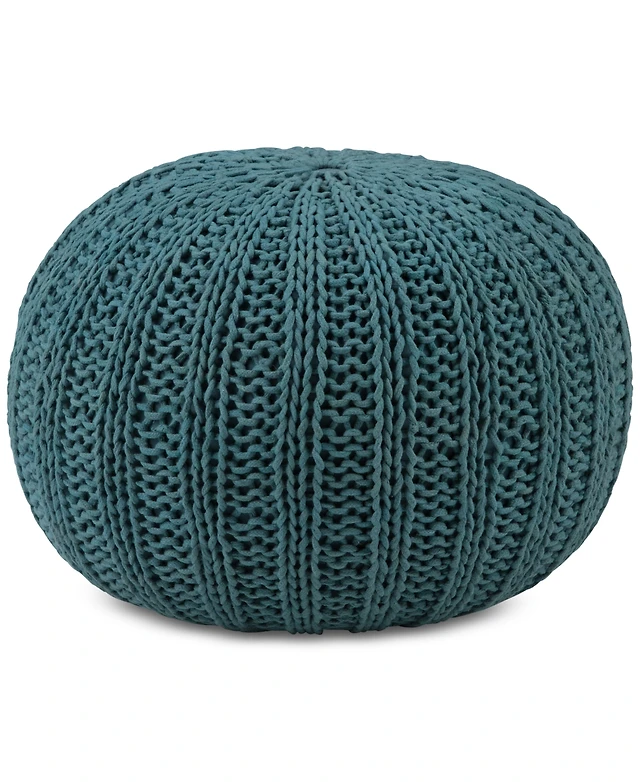 Casafield Round Pouf Ottoman, Navy Blue - 20" Dia x 14.5" High Cotton Knit Foot Stool Boho Floor Pouffe for Living Room