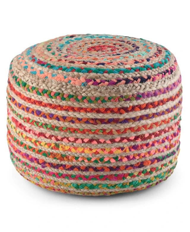 Majestic Home Goods Links Ottoman Round Pouf with Removable Cover 16" x 17