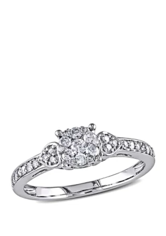 Memories Moments Magic Round-Cut Diamond Three-Stone Engagement Ring 1/3 ct tw 10K White Gold