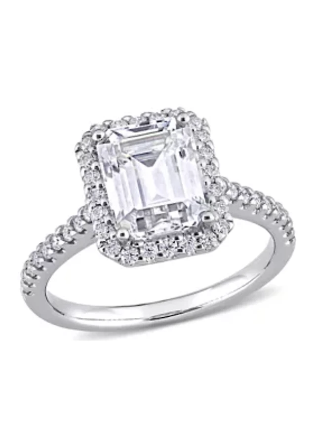 3.4 ct. t.w. Emerald-Cut Moissanite Halo Engagement Ring 10K White Gold