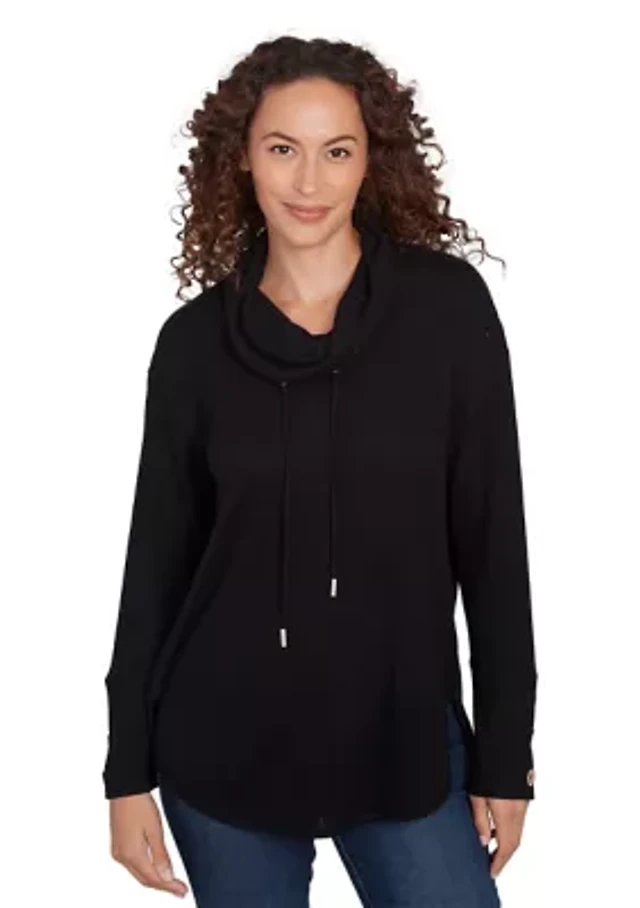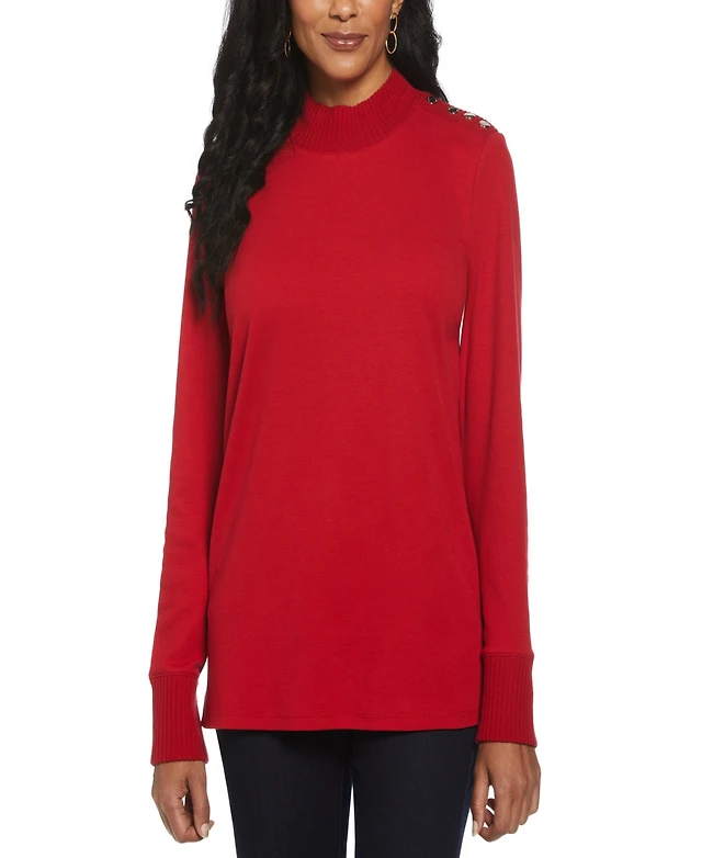 Rafaella Petite Rivet Detail Mock Neck Long Sleeve Top