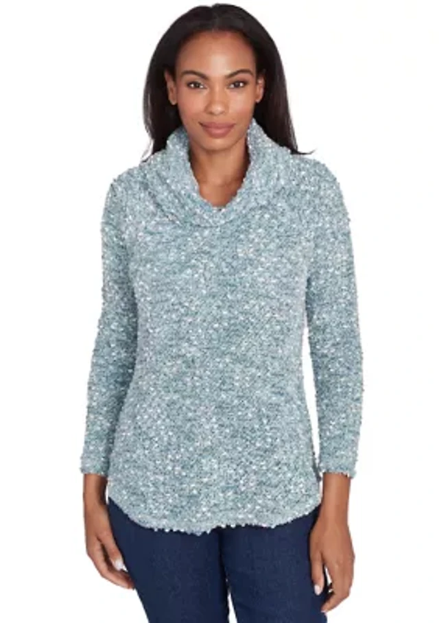 Petite Cowl Neck Fois Bois Chenille Jacquard Knit Top with Asymmetric Hem