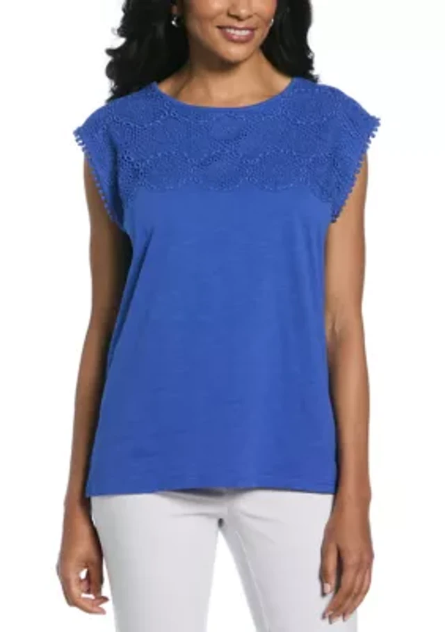 Petite Sleeveless Embroidered Boat Neck Blouse